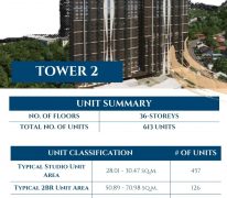 The whole Nivel Hills project is composed of two (2) towers and a branded hotel. The first tower is a mix of 210 condotel