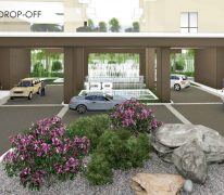 via a common podium at the second floor that will house